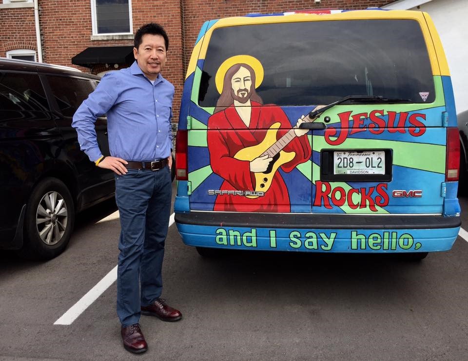 Friend Michael Han graciously let me share this picture of himself and a van outside The Village Chapel in Nashville —