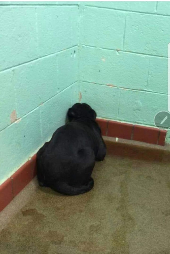 This is a real picture of a dog who was left at a shelter this week by an owner who discarded him without looking back.
