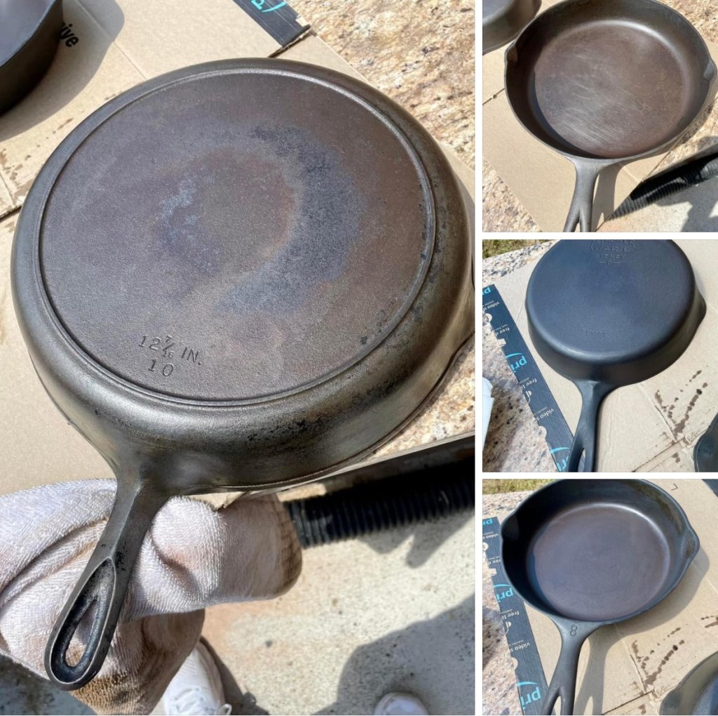 So, as I look for new small projects in my retirement, I decided to bake all the old gunk and grease off them and re-season them for use again. Well, I did that and as I started to do some investigating I learned that the biggest of these two skillets was made pre-1940.